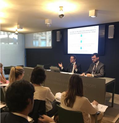 El pasado 4 de octubre tuvo lugar la primera sesión del curso 2018-2019 del Centro de Estudios de la Procura (CEP) bajo el título «Acciones de precario o recuperación de la posesión no consentida en vía civil y penal. La nueva regulación de la Ley 5/2018 de 12 de junio en relación a la ocupación ilegal de las viviendas». El seminario, que contó con el procurador de los tribunales Ignacio de Anzizu y Pigem como ponente, tuvo muy buena acogida.